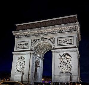 From there, we continued by foot to the Arc de Triomphe de l’Étoile. Then we walked along the Champs Élysées to the Eiffel Tower. As it was already dark, it was even more beautiful to see Paris and its sights at night. We took a short break to eat something. The break did me a lot of good, as we had already walked a lot by that point.