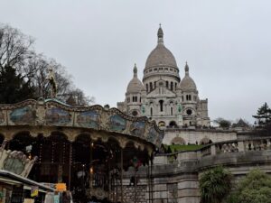 Last Saturday we were in Paris. We didn’t leave home until the afternoon, but we stayed out late at night. First we went to Montmartre. We walked up to the top instead of taking the elevator. The view from the top was amazing. We also went inside the basilica and had a look around.