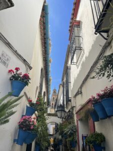 A few minutes after arriving in Cordoba we had a guided tour. The guide led us through the winding alleyways of the old town,where we saw many beautiful houses and it was stunning that almost all the buildings were painted white,which looked very traditional and bright.For lunch, we went to a restaurant with buffet, the food was very delicious. Later, we had two hours of free time and the opportunity to explore the city by ourselves. We really enjoyed our stay in Córdoba.