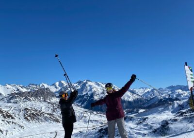 We got to the Pyrenees at eight o´clock, where everybody started taking picture, since most of the others neither had been to the Pyrenees nor had tried skiing. After we had reached Formigal, we collected our equipment and received an two hours‘ briefing from a ski instructor. Well, the others did, but I had to change my boots twice (and there was a huge queue), so I joined my group half an hour later, but I didn´t miss anything important, because honestly, the instuction for my group was superfluous (for we all knew how to ski). Afterwards, we separated ourselves in groups, on condition that nobody skied alone. During a small lunch in the afternoon, we were reminded to be back at 4:30 so that we had time to return our borrowed stuff.